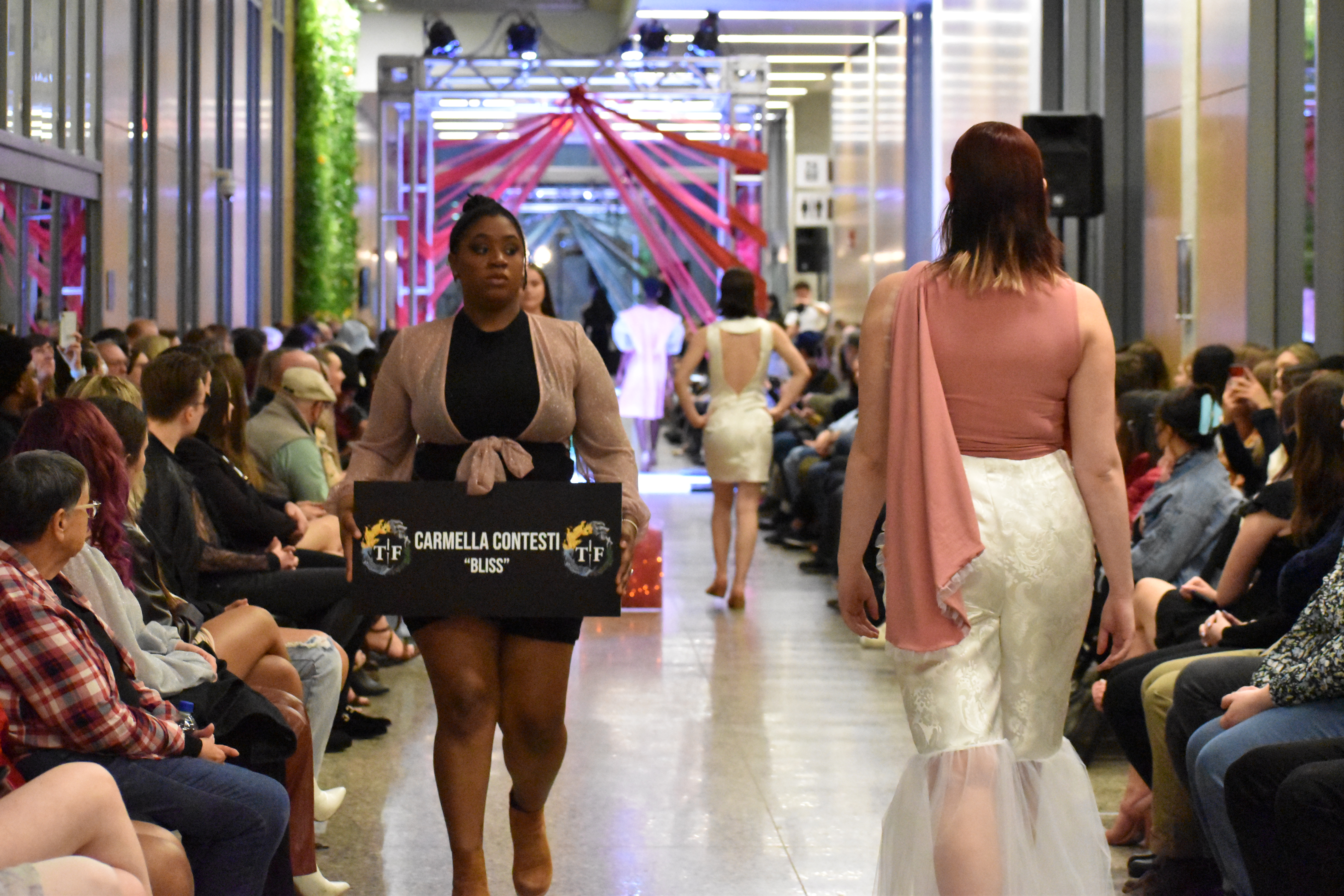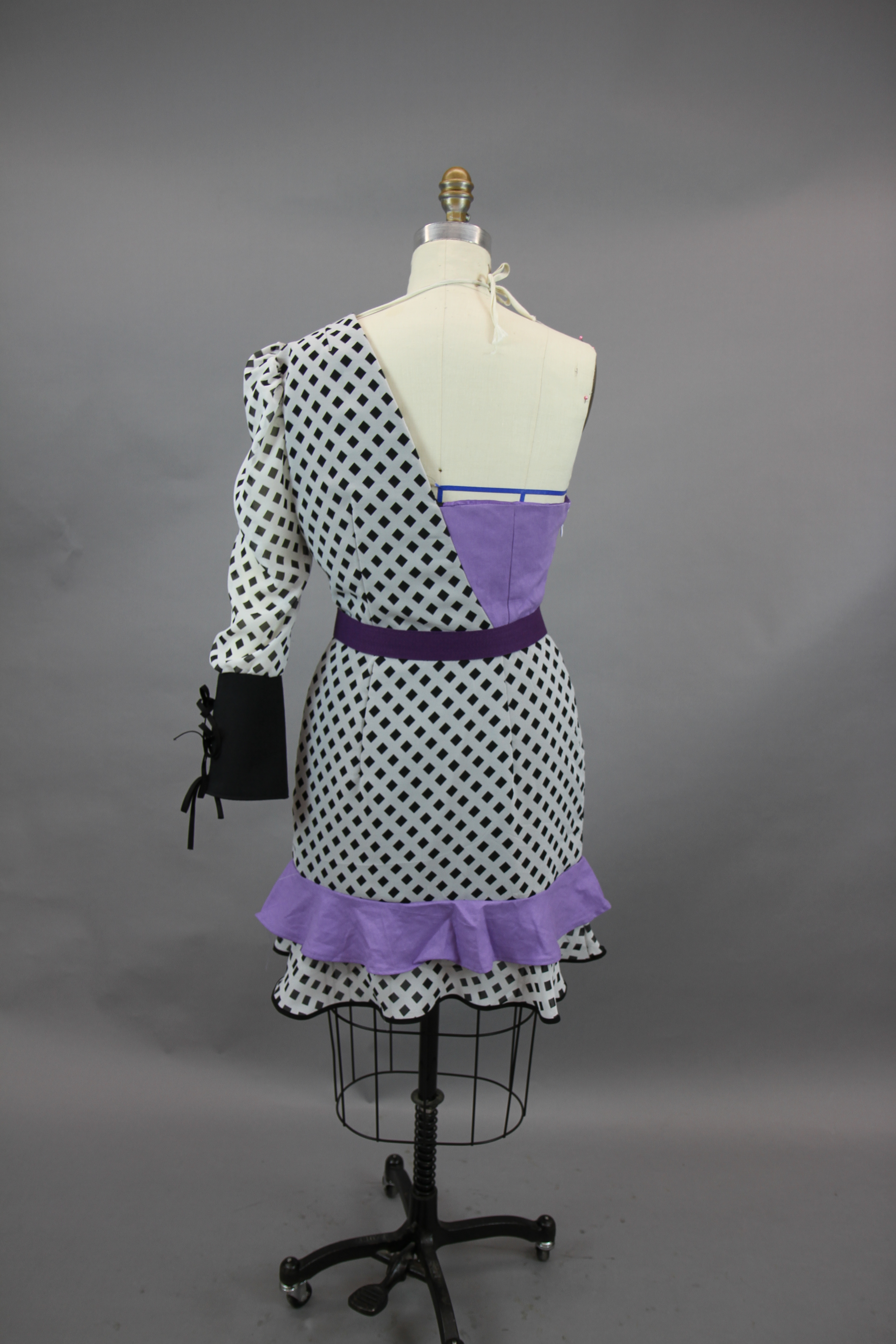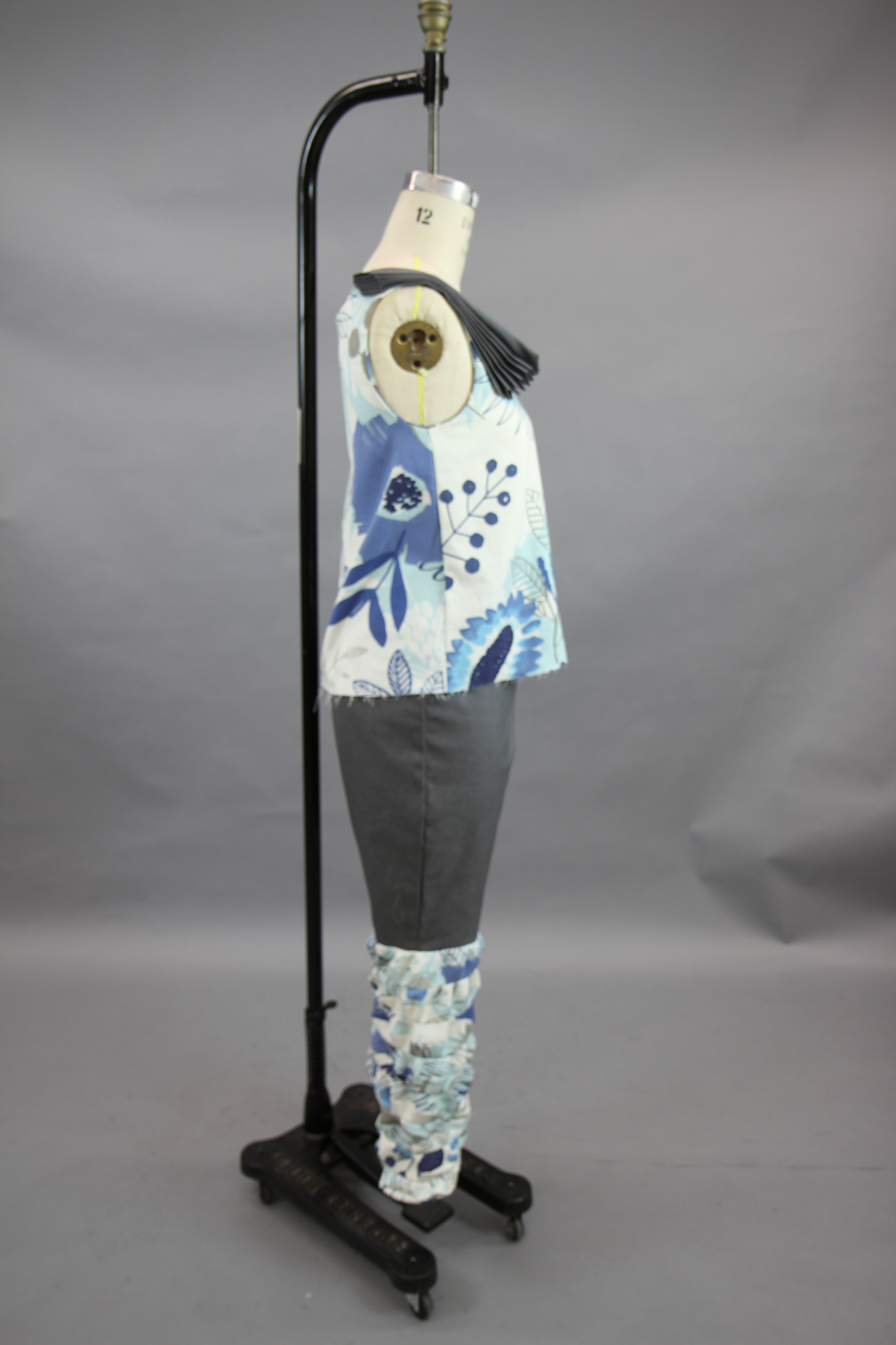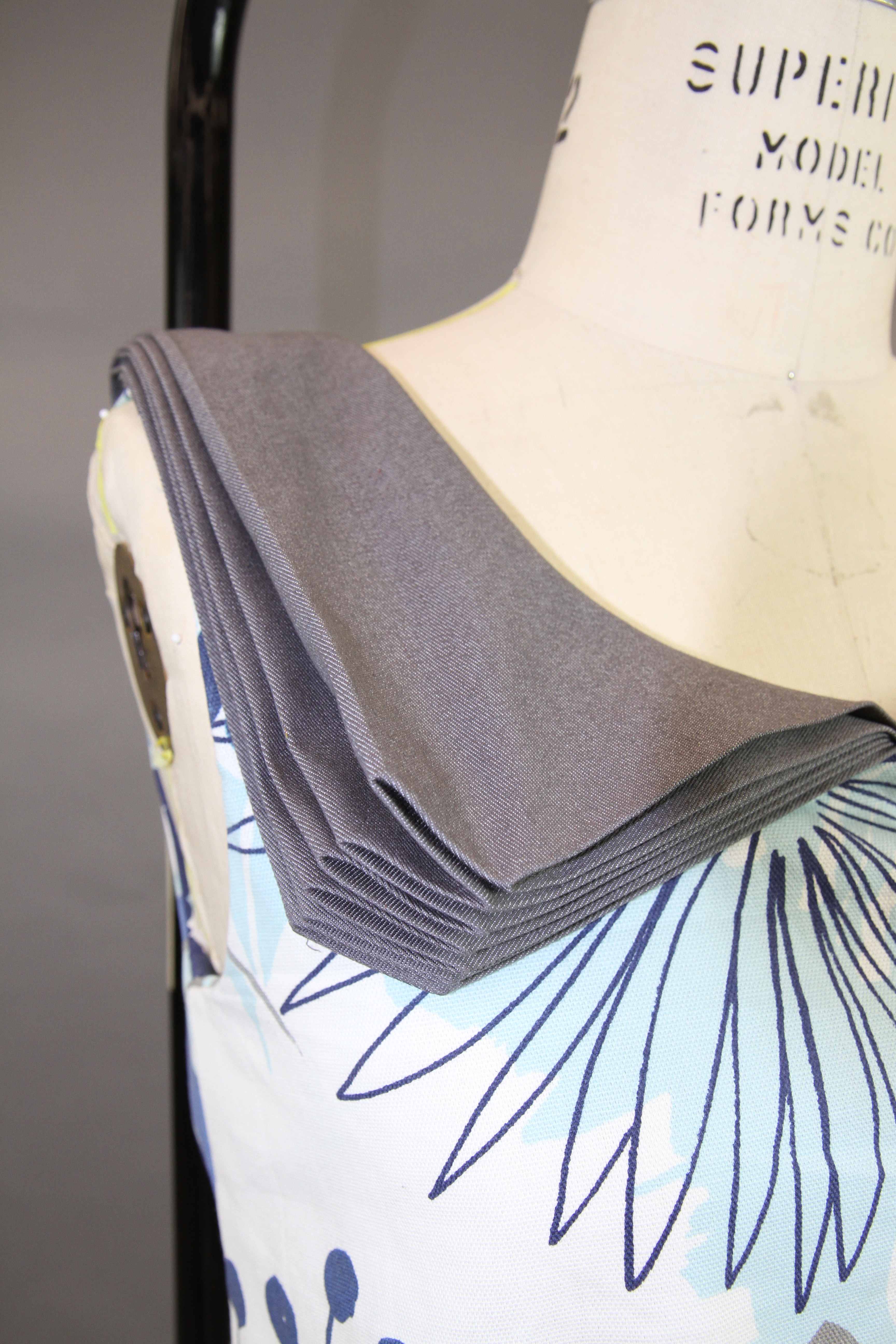 This class focused on the creation of a collection using the skills that the designers have learned throughout their fundamental classes. The collection I created works to combine draping and flat patterning. I wanted to play with different mediums for these garments, adding in grommets and chain as well as boning to create structure in the black and white garment.