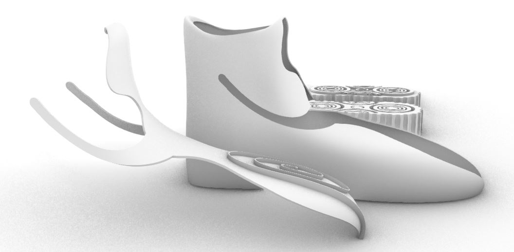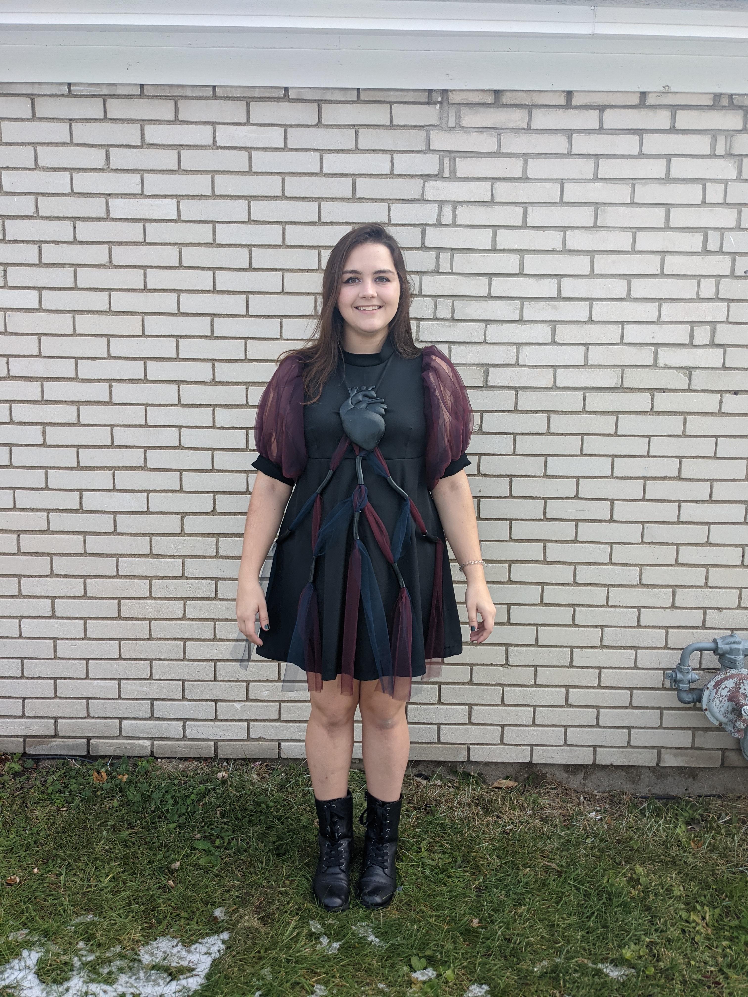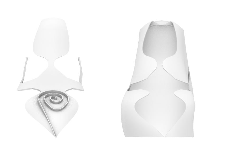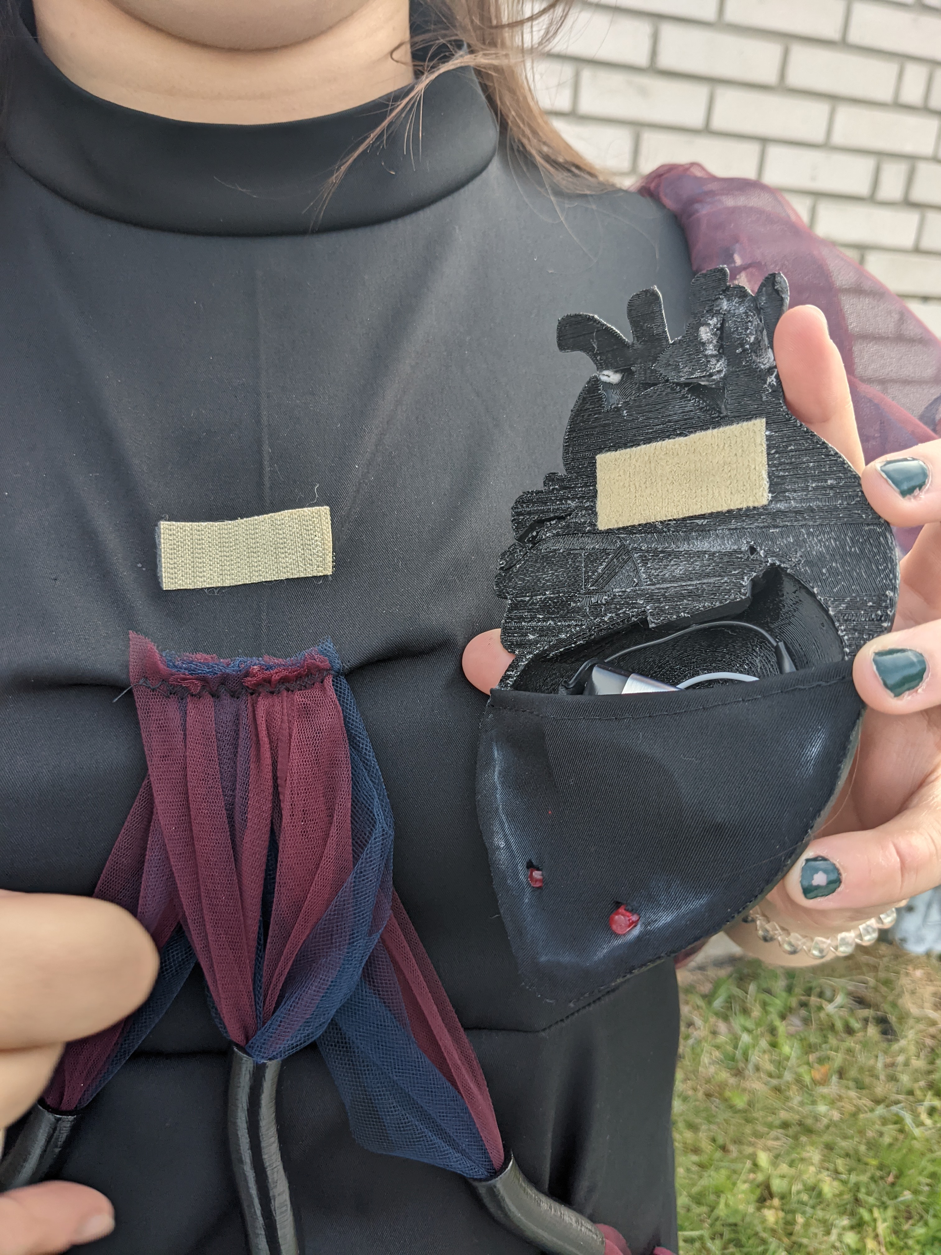 The final project was to create an object that is molded to the body utilizing a 3D body scan of yourself or a model. My inspiration was Edgar Allen Poe’s A Tell-Tale Heart with the color scheme coming from that era as well.