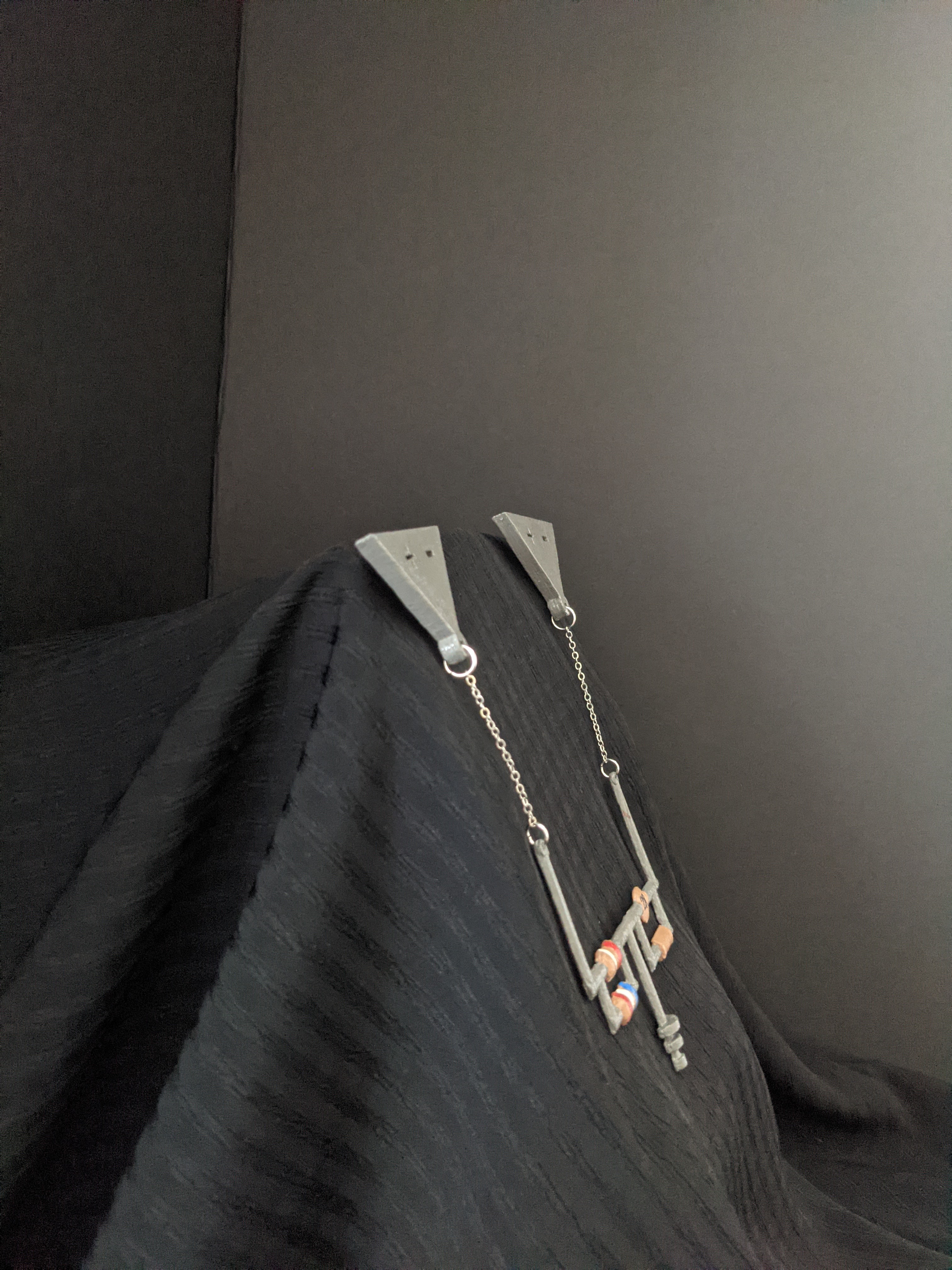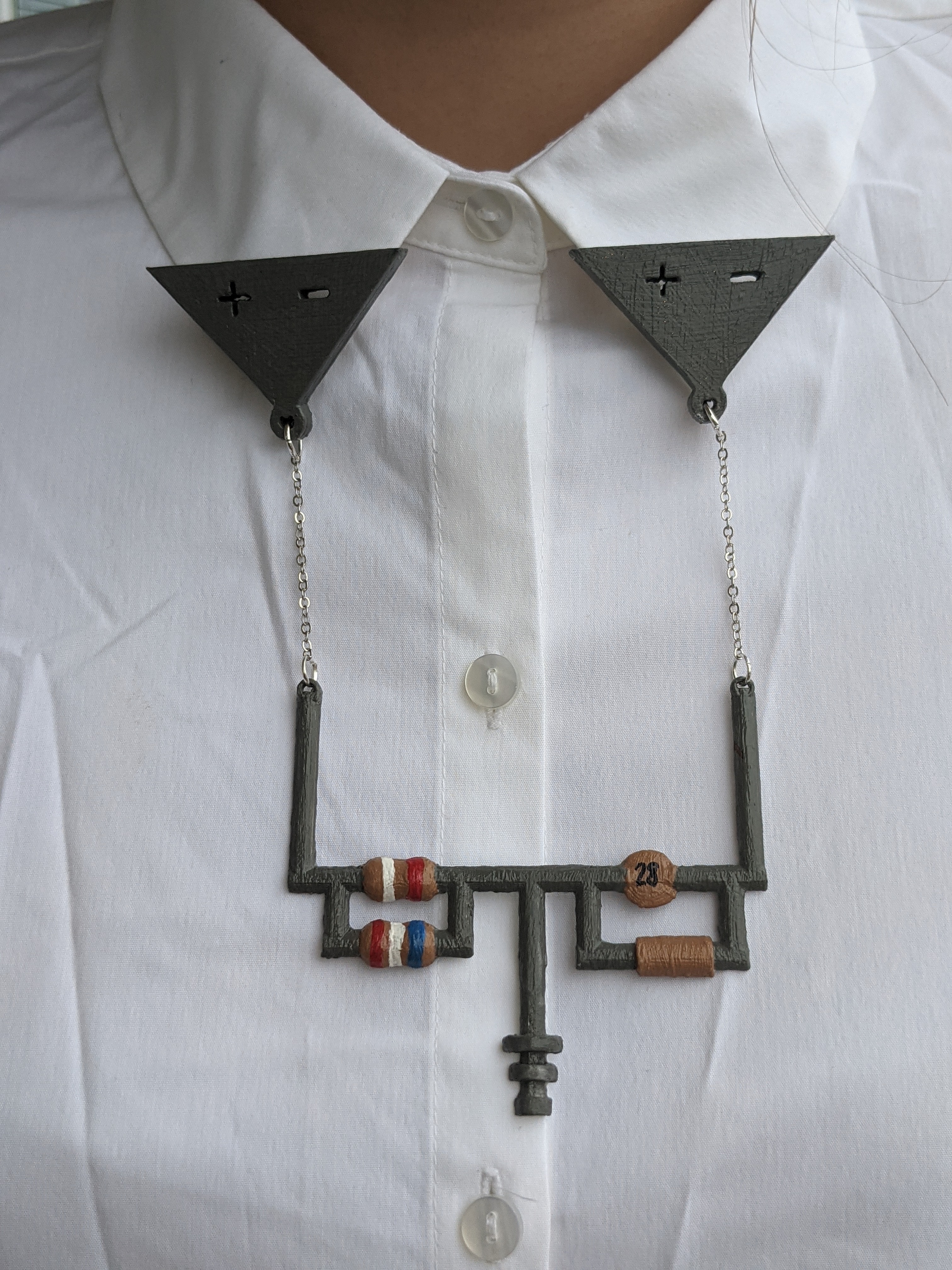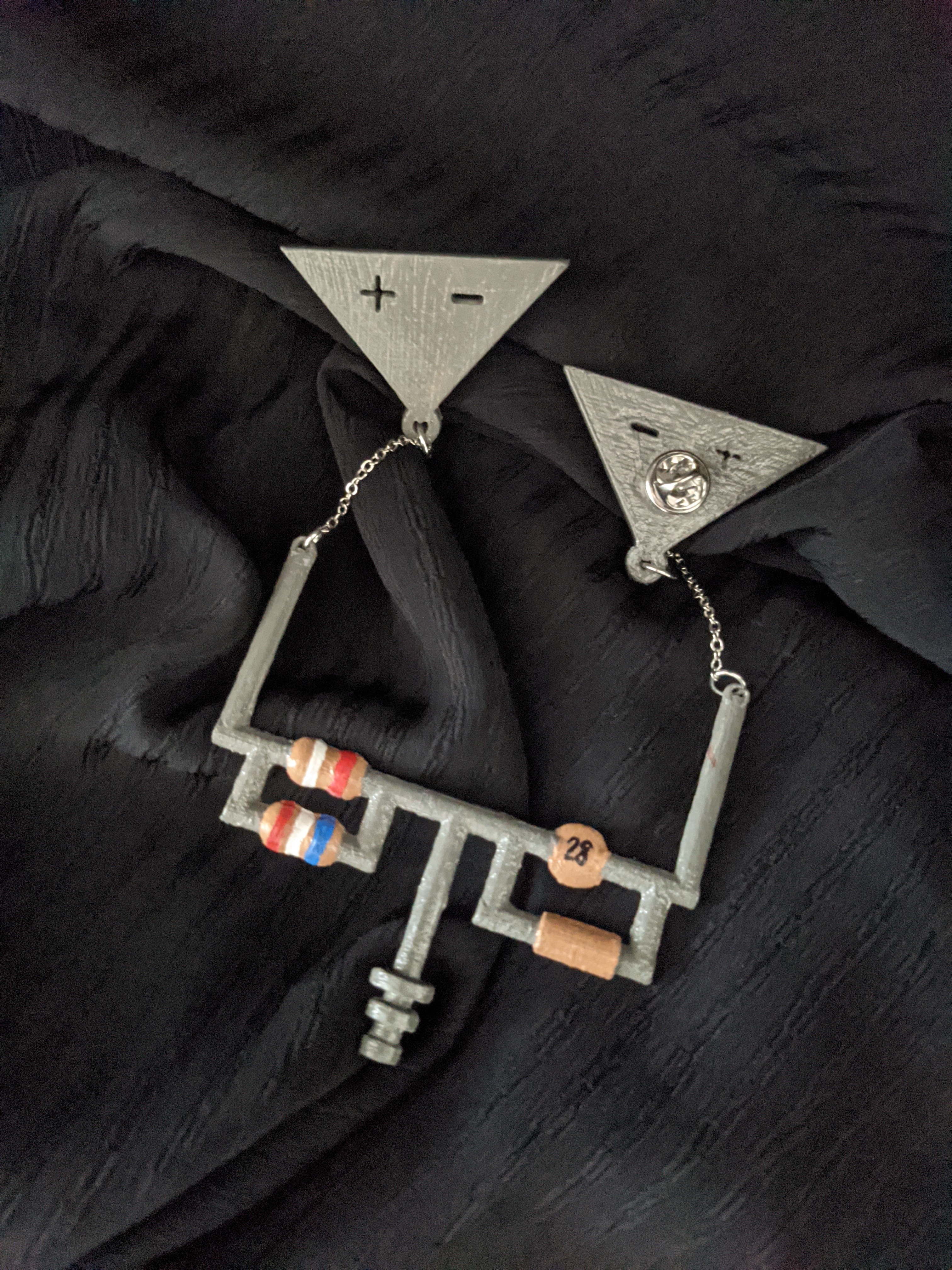 This project focused on creating a jewelry piece that embodied STEM and its connection to a woman’s place in it. Typical components that are found in a circuit such as a resistor and a capacitor are found on the main body of the piece, connected to Op Amp look a-likes to create a conversation piece that can be worn to any event.